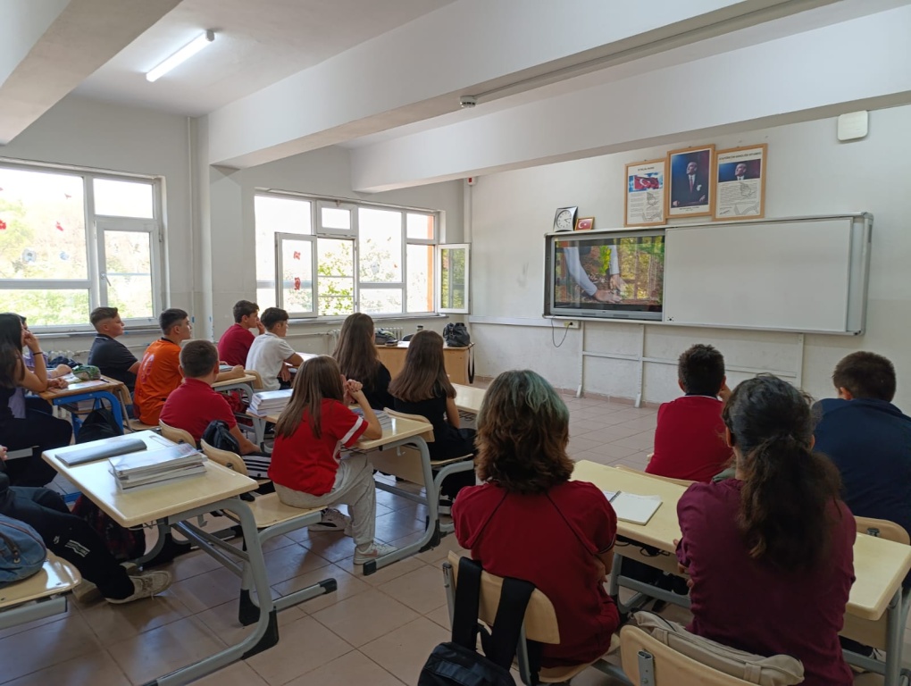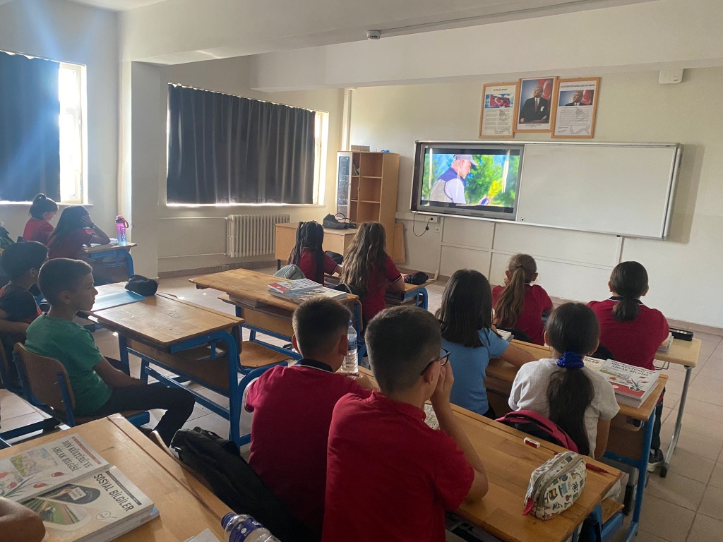 Okulumuzun açıldığı ilk gün ilk derste öğrencilerimize EBA' dan yayınlanan "Her çocuk bir fidan" adlı kısa film izletildi. Öğrencilerin "Yeşil Vatan" kavramını tanımaları, doğa sevgisi ve çevreyi koruma bilincini pekiştirmeleri, ormanlar konusunda yapılan çalışmalara değer vermeleri ve sürdürülebilir bir yaşam için Yeşil Vatan'ın önemini fark etmeleri amacıyla ilk dersimizi bu konuya ayırarak doğa ve çevrenin korunmasının önemine dikkat çekildi.